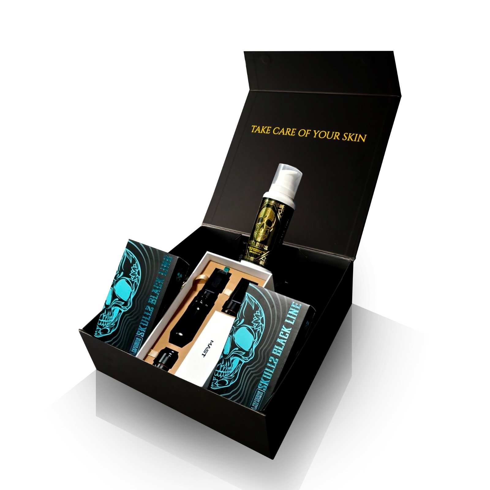 Una caja diseñada para tatuadores que buscan rendimiento real y material de alto nivel. Combina máquina profesional, cartuchos premium y productos esenciales de trabajo, junto con la camiseta y tarjeta exclusiva Elite Member.
